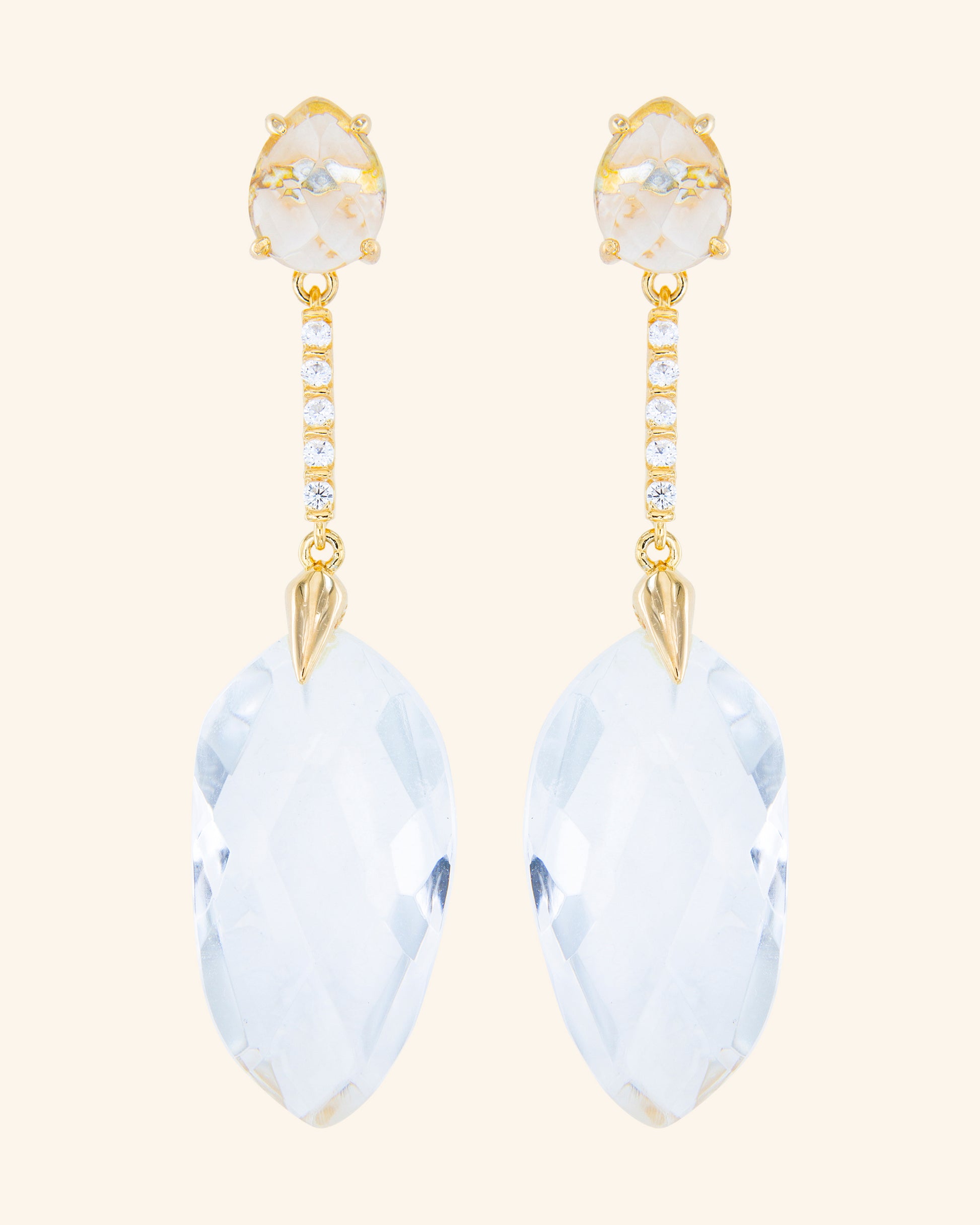 Pendientes en oro champán y piedras naturales talladas a mano con detalles en circonitas para aportar brillo a tus looks. Una joya llena de movimiento y colores que será tu mejor aliada para tus ocasiones más especiales.