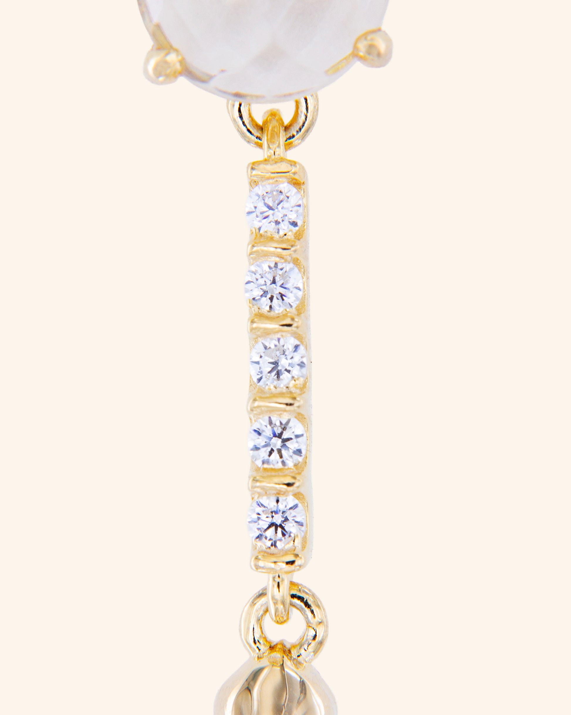 Plata 925 ms bañada en oro champán, Cuarzo incoloro 100% natural y circonitas.