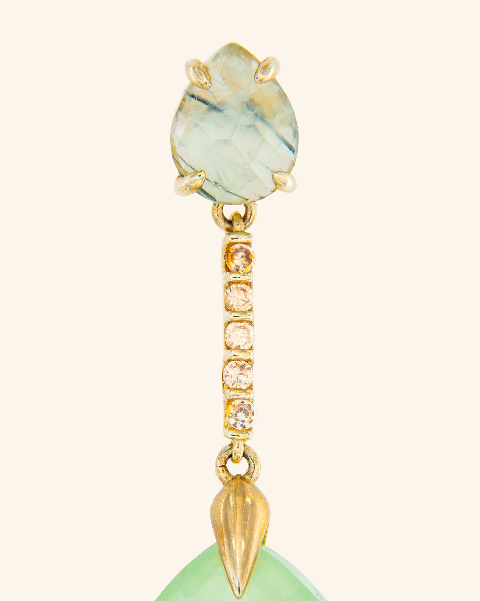 Plata 925 ms bañada en oro champán, Prehnita 100% natural y circonitas.
