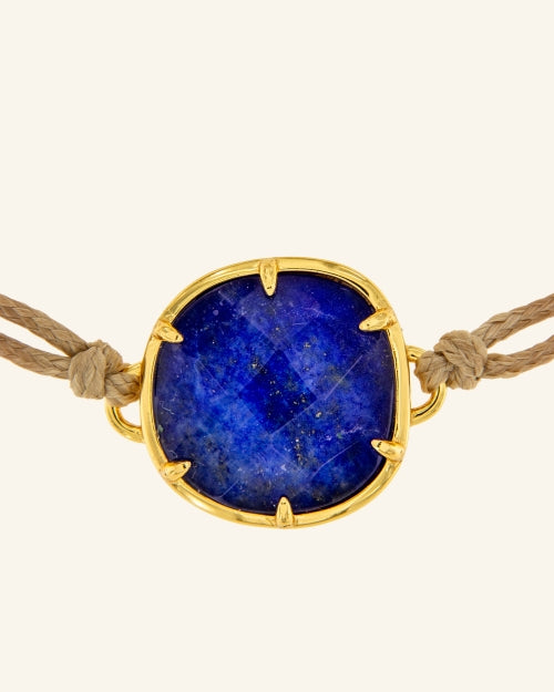 Pulsera con correa en algodón encerado y piedra natural tallada a mano con bisel en oro champán. Una pieza que se une a los básicos Coolook y que sería siempre fiel a tu estilo, aportando luz y color a tus looks del día a día.