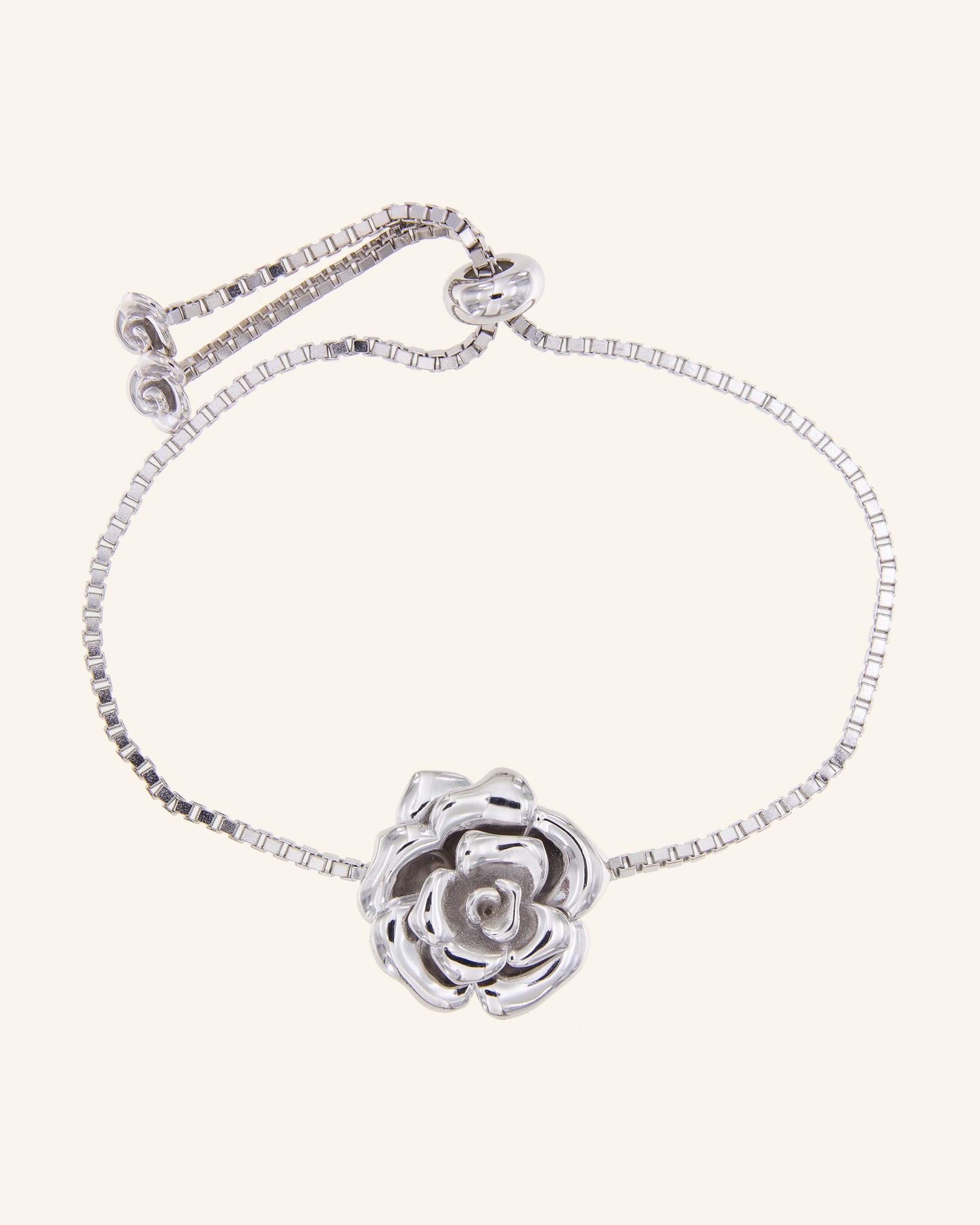 Pulsera en plata, inspirada en la flor conocida como Rosa del Edén, un híbrido creado por el rosalista Jacques Mouchotte. Realizamos una joya única con detalles cuidados y un diseño sofisticado, que es como la flor que la inspira ya es un favorito del verano.